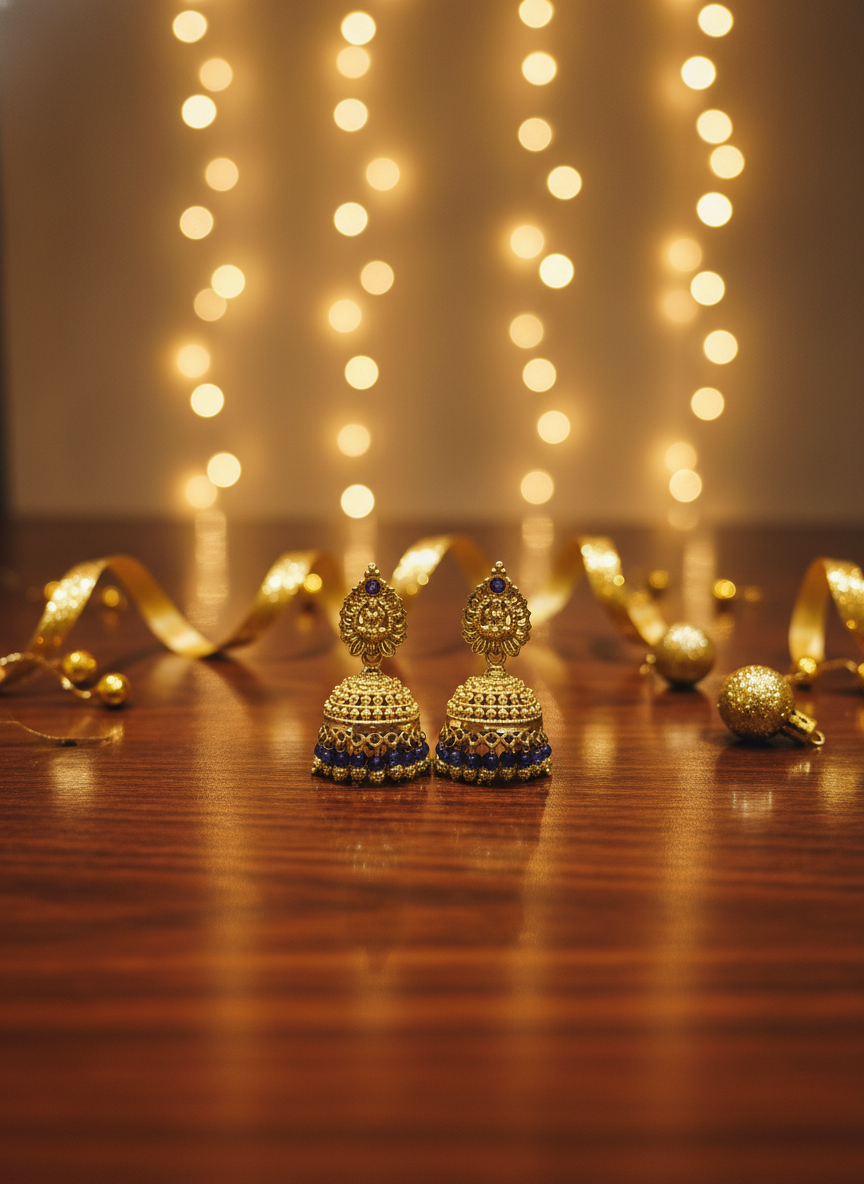 Shape: Classic bell-shaped (Jhumka) silhouette for a graceful sway.