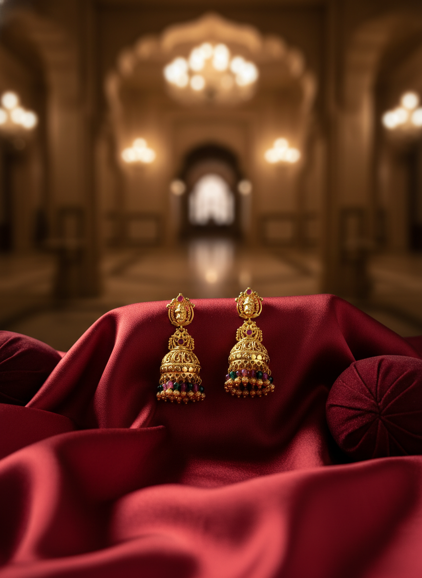 Vintage to Modern: The Best Jhumkha Styles of 2026 Elevate your jewelry collection with the timeless allure of our Handcrafted Golden Temple Jhumka Earrings. In the world of ethnic jewelry, few pieces command as much respect and admiration as the jhumkha earrings. A timeless silhouette that has transcended generations, the jhumka (or jhumki) is the quintessential symbol of feminine grace, traditional artistry, and celebratory spirit. Our latest collection brings you a masterpiece of design: the Handcrafted Temple Gold Jhumkha Earrings, a pair that perfectly marries the architectural grandeur of ancient India with the wearable comfort required by the modern woman.